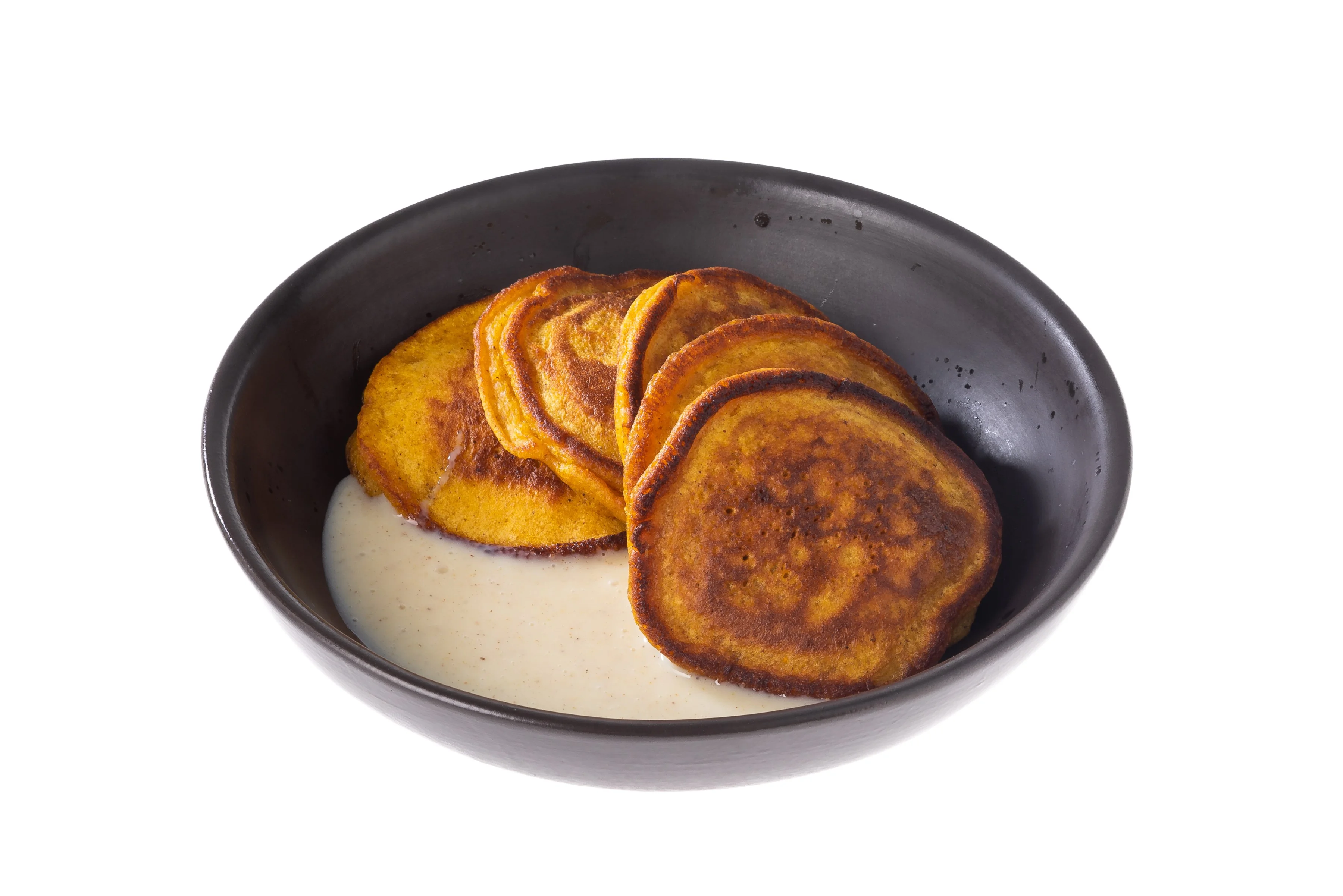 ШАГ 10 Сгущенку смешать с корицей и кардамоном, полить ею готовые оладьи и сразу же есть.