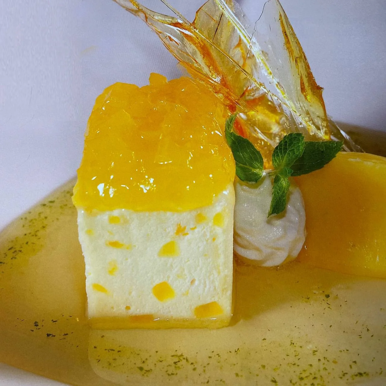 ШАГ 6 Приготовить сироп из папайи, растворяя на водяной бане разведенный в воде желатин и сироп из папайи, хорошо перемешать. Добавить папайю брюнуаз и тщательно перемешать.