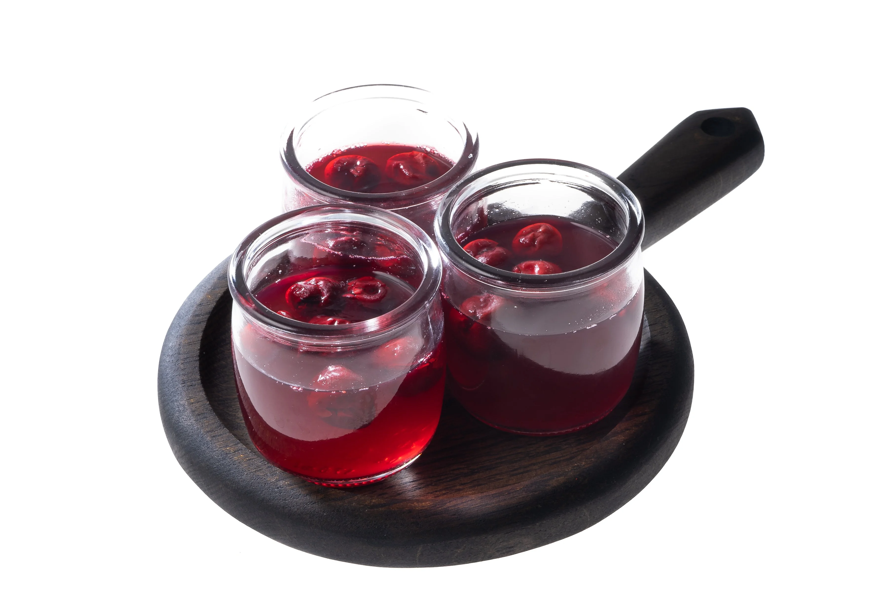 ШАГ 2 Процедить вишневый компот, вареные ягоды в желе не нужны.
