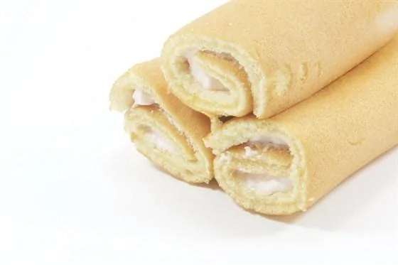 ШАГ 3 На испеченный корж положить любую начинку ( джем, варенье и т.д.) и сразу же закрутить корж рулетом. Положить швом вниз и дать постоять. Посыпать сахарной пудрой.