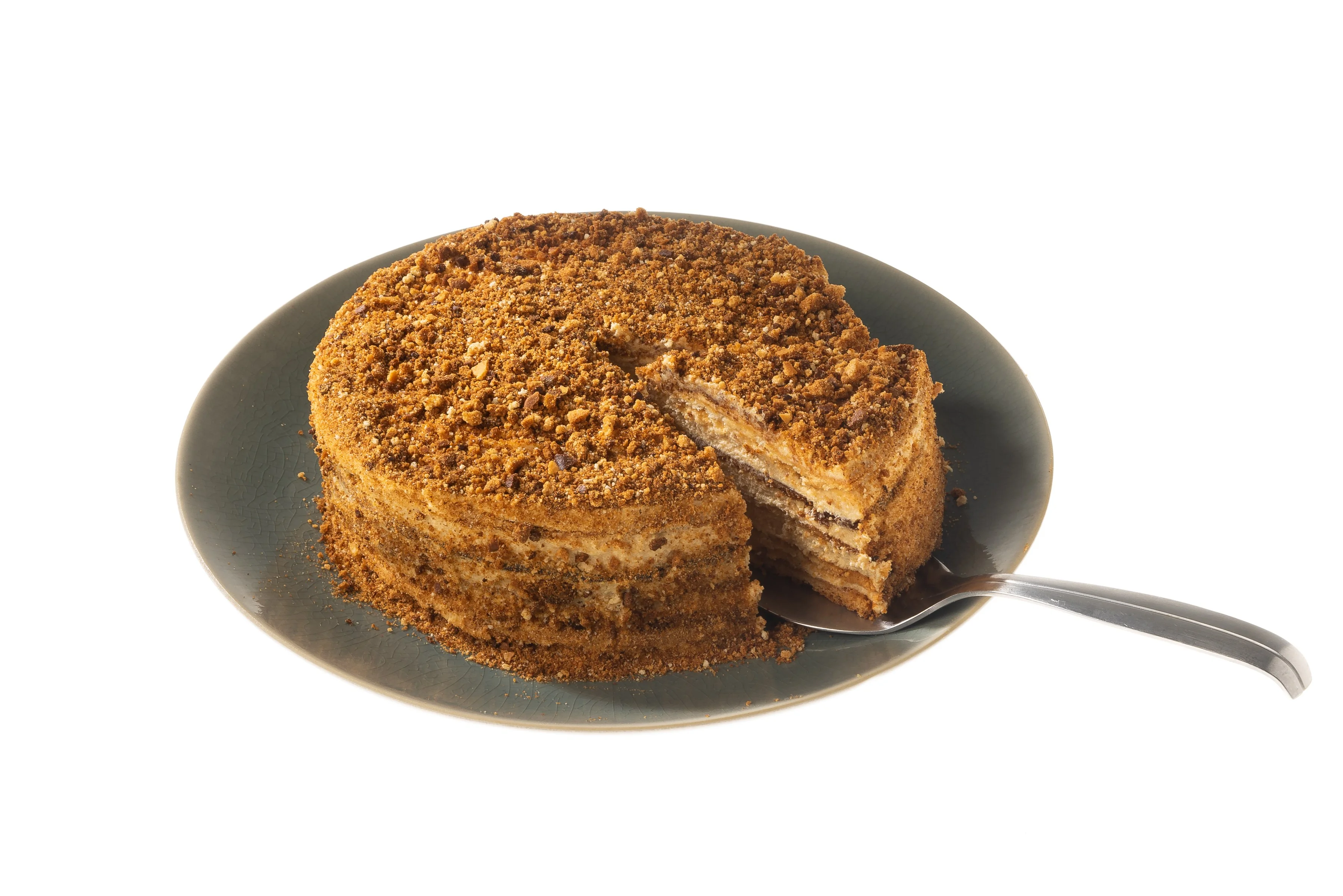 ШАГ 13 Собрать торт. Прослоить коржи кремом, верх и бока торта обсыпать крошкой из обрезков коржей. Убрать торт в холодильник минимум на 3 часа, а лучше — на ночь.