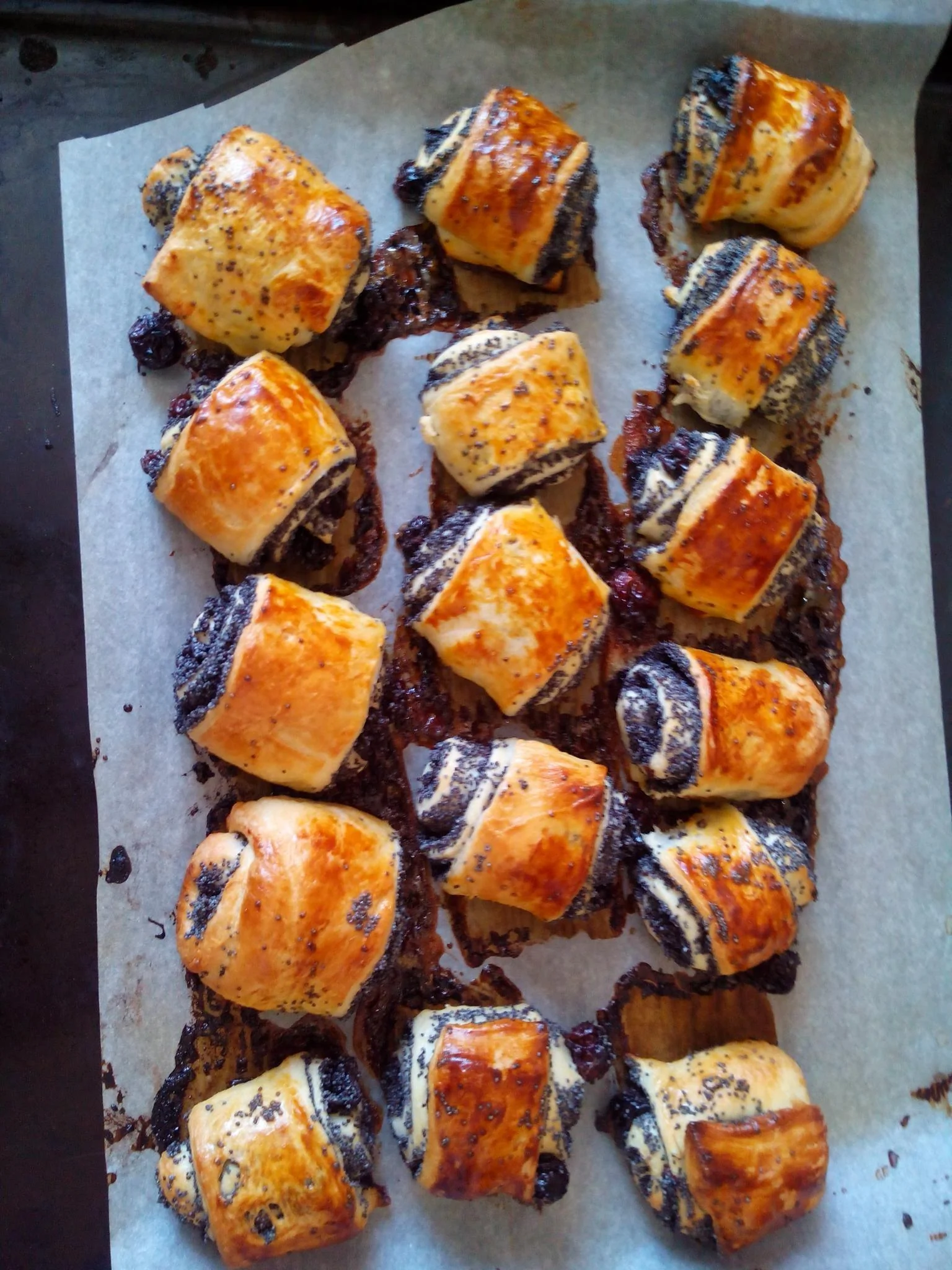 ШАГ 4 Каждый шарик раскатать в полоску толщиной около 5 мм. Выложить на полоску слой маковой начинки, разровнять ее, после скатать полоску в валик. Валик поставить вертикально, немного прижать к доске, чтобы основание стало шире верхушки. Верхушке придать форму розового бутона.