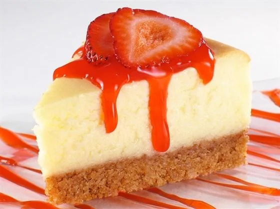 ШАГ 6 Готовый охлаждённый чизкейк поливаем топпингом и украшаем клубникой.