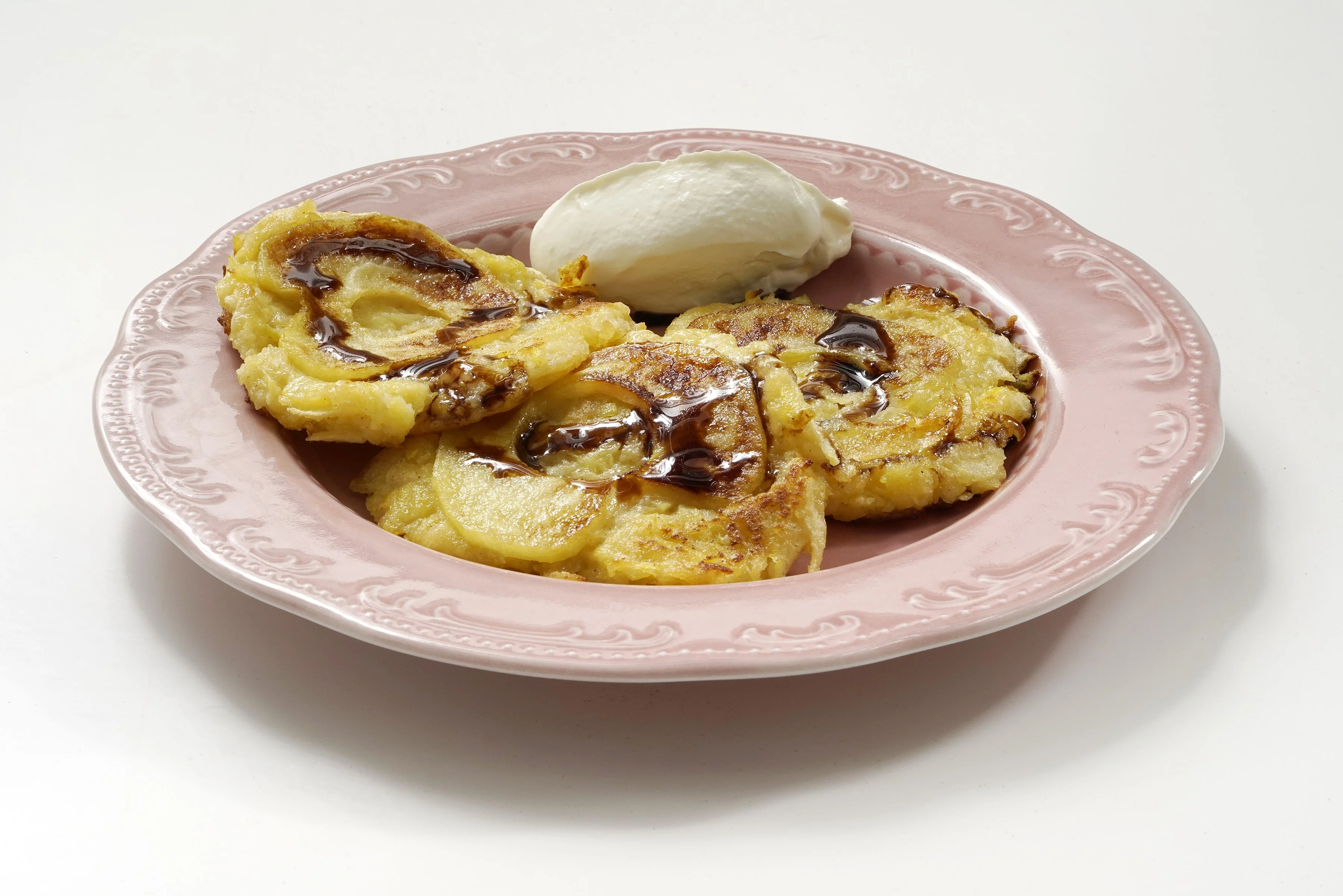 ШАГ 12 Аккуратно перевернуть оладьи на другую сторону и дать тоже хорошенько подрумяниться. Подавать оладьи с припеком горячими, сбрызнув бальзамиком, со сметаной. Или с вареньем.