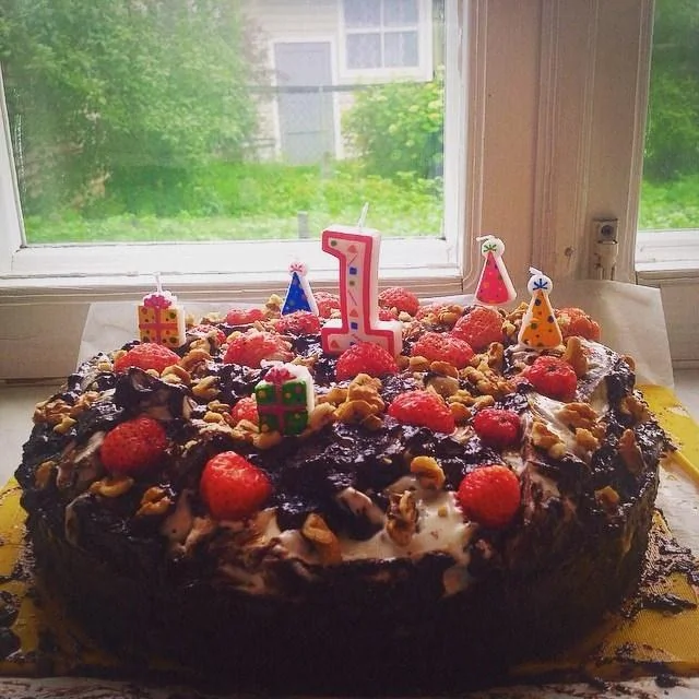 ШАГ 2 Разделить на 2 части, в большую добавить какао (на свой вкус и цвет). Испечь круглый белый корж в форме и шоколадный на противне.