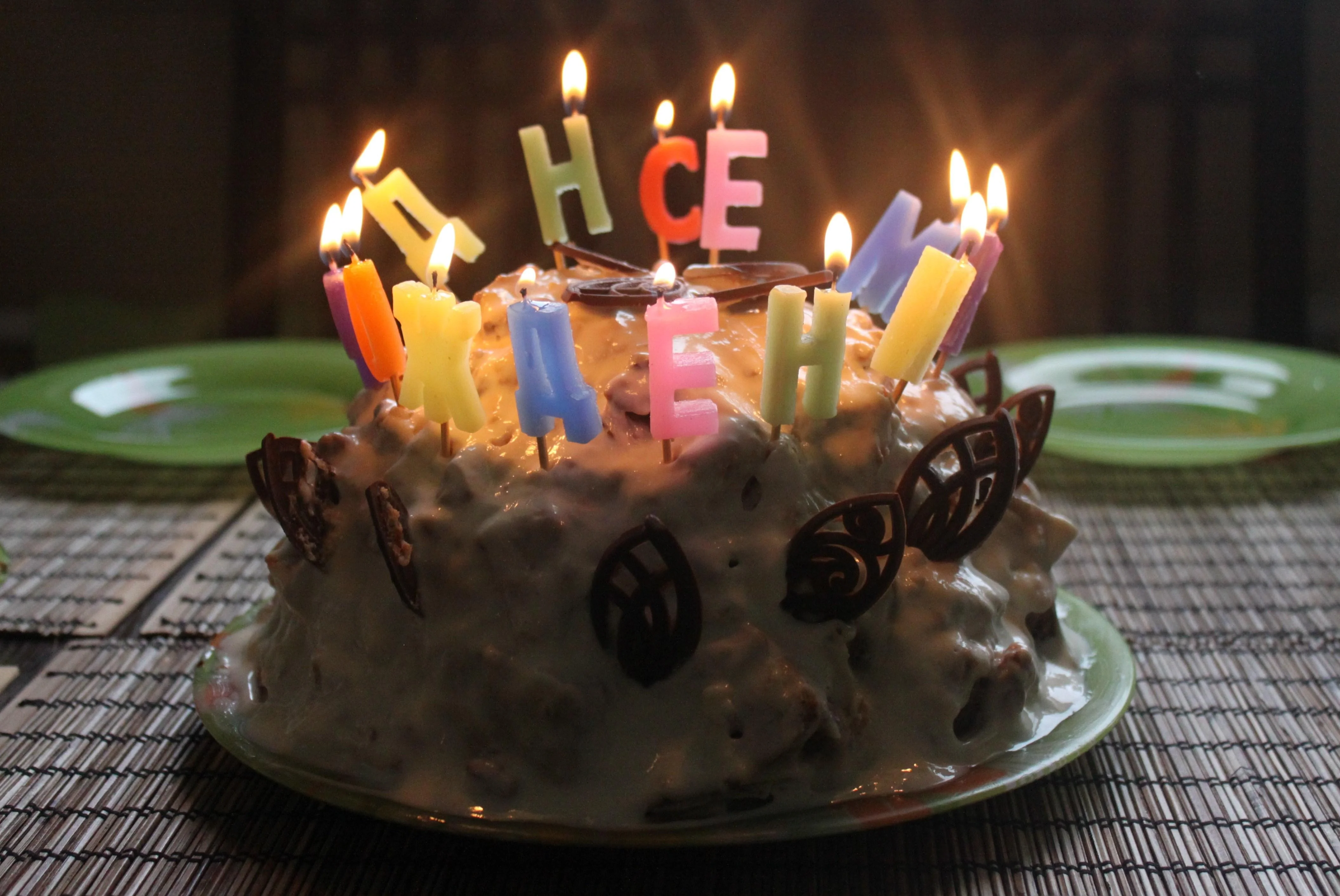 ШАГ 5 Коричневый корж разрезать на треугольные кусочки, обмакивать их в крем и укладывать на белый корж произвольно, а потом полить остывшей глазурью.