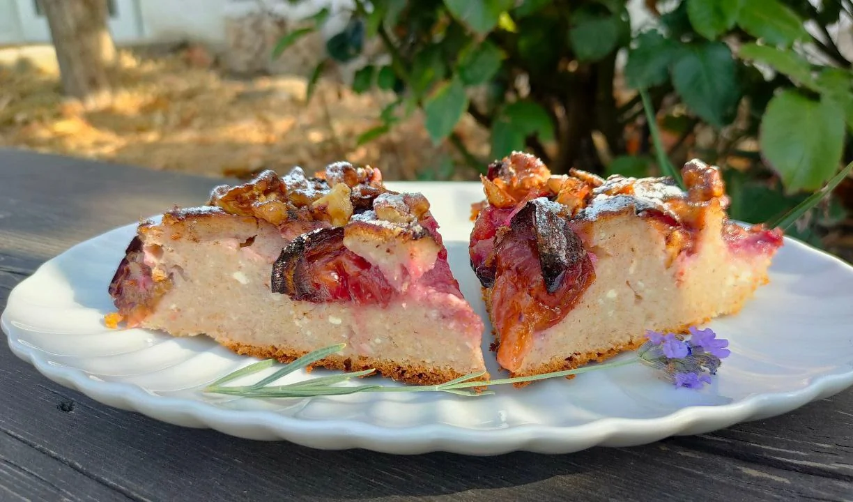 Ингредиенты для приготовления Сливовый пирог с какао и орехами: