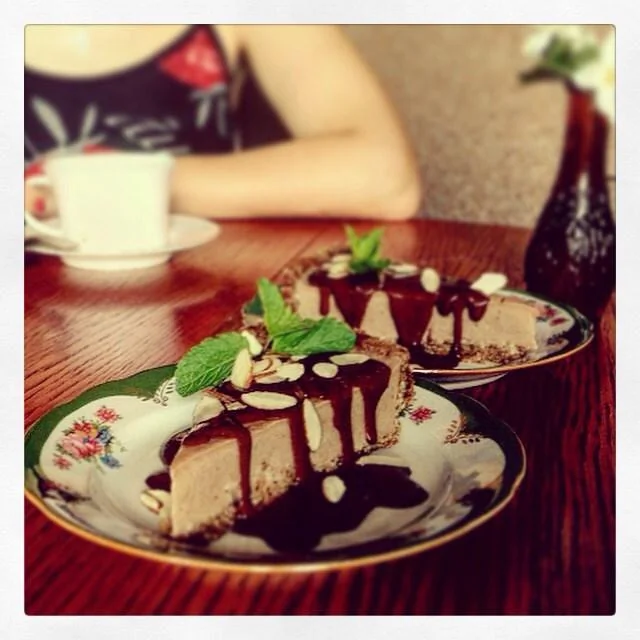 ШАГ 2 В блендере взбить бананы, ванильный стручок, миндальное, кокосовое молоко, какао-порошок, лимонный сок и сироп сорго. Отлить немного смеси, слегка подогреть и растворить в ней три чайные ложки агар-агара. В агар-агаровую смесь влить всю массу и подержать на среднем огне пять минут. Полить этой смесью ореховое тесто в форме. Поставить в холодильник охладиться.