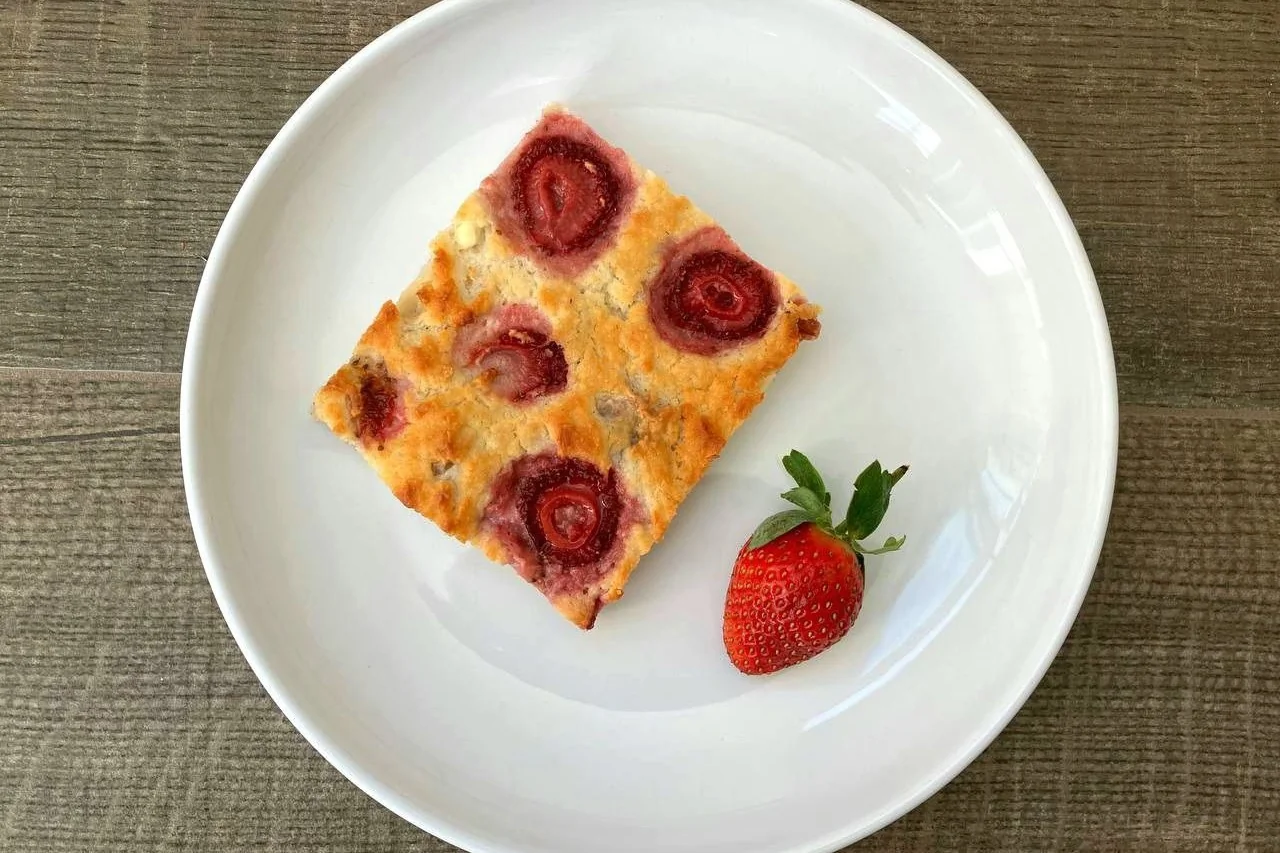 Творожно-овсяный манник с клубникой, бананом и изюмом