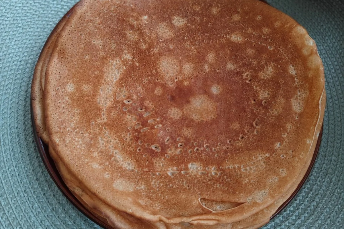 ШАГ 12 Выпекать блины до румяного цвета с обеих сторон.