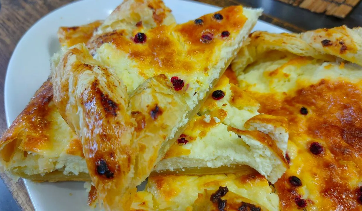 ШАГ 8 Творожную начинку выложить на тесто, распределить по кругу.