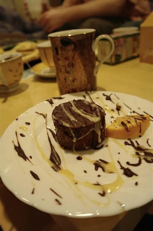 ШАГ 3 Используя металлическую ложку, быстро вмешайте растопленный шоколад и размельченные орехи в яичную смесь. Хорошо перемешайте. Добавьте взбитые сливки и перелейте в форму. Поставьте форму на противень и налейте горячую воду, чтобы она на половину закрывала форму. Выпекайте 1 час. Выньте пирог из духовки и охладите. Накройте пленкой и поставьте в холодильник на всю ночь.