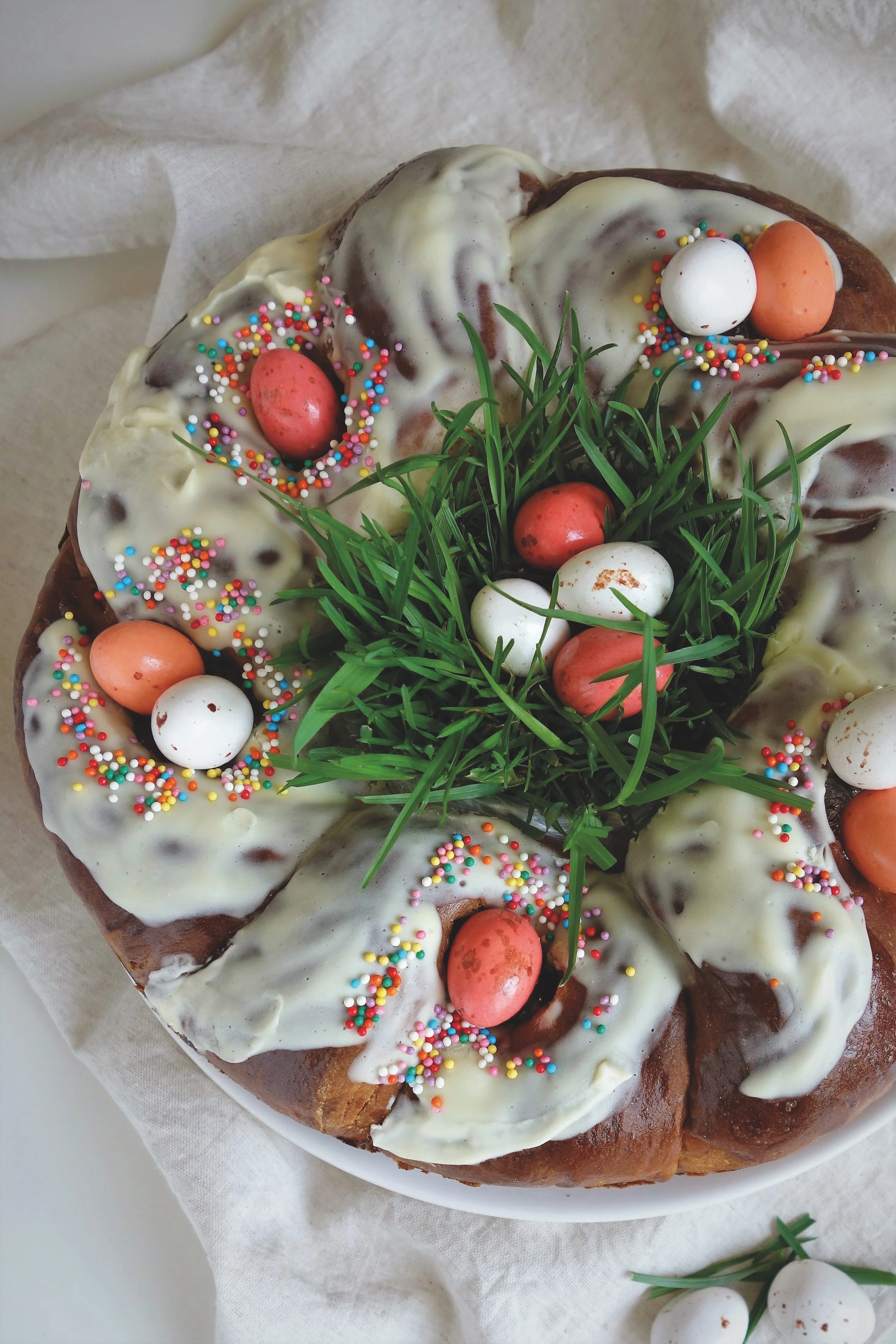 ШАГ 17 Когда глазурь подсохнет, уложить в выемки декоративные яйца.