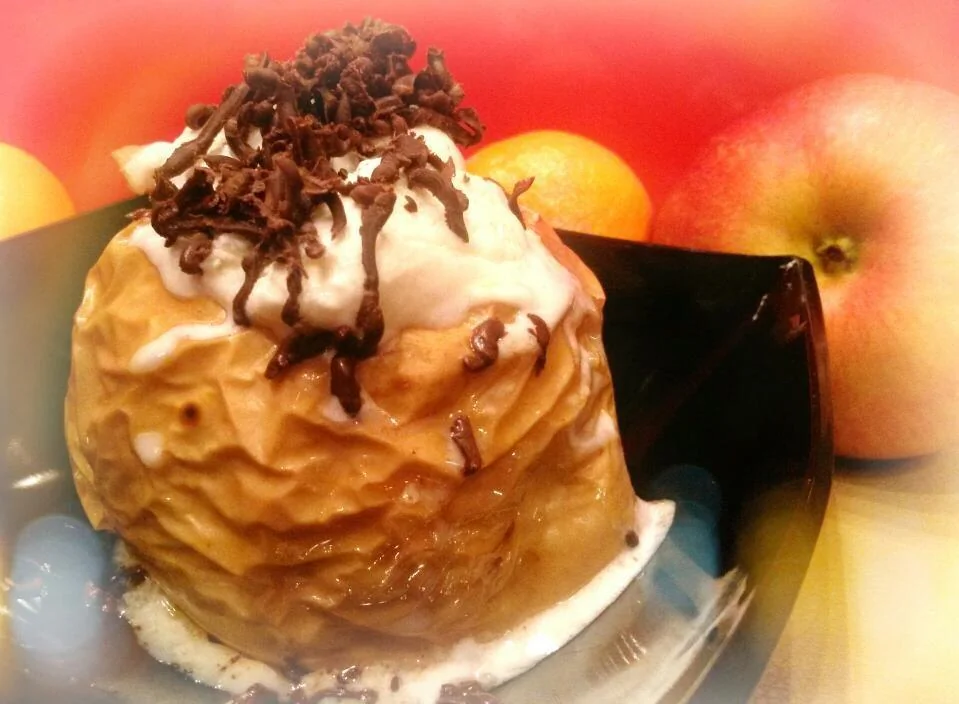 ШАГ 4 Пеките 45-50 минут до мягкости яблок; проверяйте палочкой. Подавайте горячими, политыми мороженым и шоколадным сиропом.