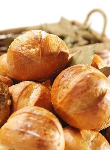 ШАГ 3 Положить тесто на стол, присыпанный мукой, разделить на булочки. Разложить булочки на противень, дать им подняться.