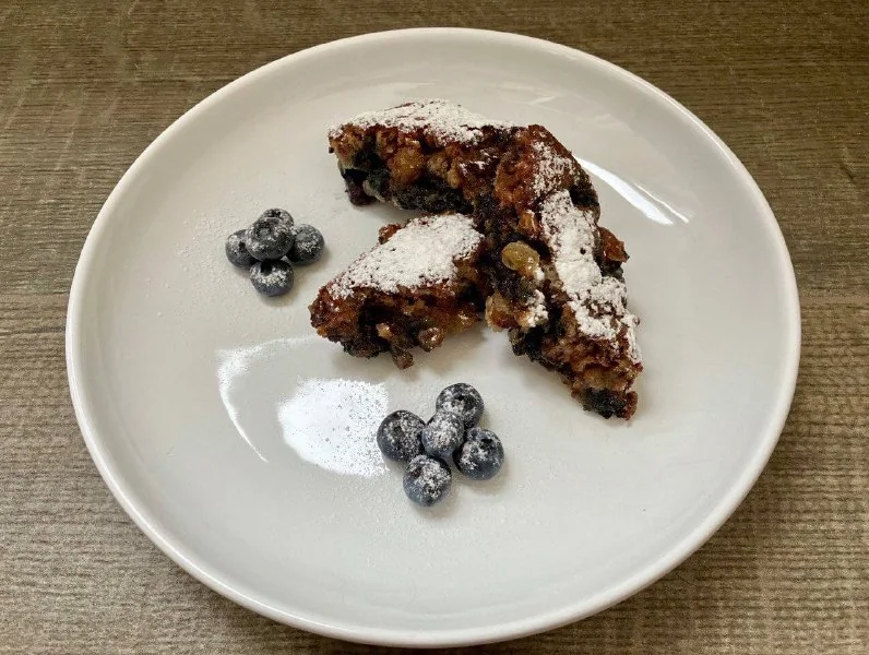 ШАГ 10 Достать из духовки, нарезать на печенье и остудить. Подавать, остудив и предварительно украсив сахарной пудрой и ягодами голубики.