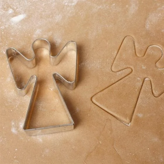 ШАГ 3 На рабочей поверхности, присыпанной мукой, раскатать тесто в тонкий пласт. С помощью специальных формочек в виде ангелов вырезать из теста фигурки.