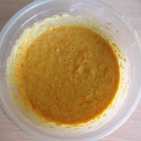 ШАГ 2 Тыкву натереть на мелкой терке, добавить в тесто и полученную массу измельчить в блендере до состояния пюре.