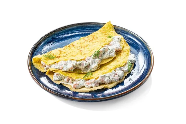 ШАГ 10 На готовые блины из кабачков выложить начинку и подавать.