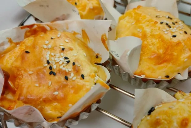 ШАГ 13 Затем готовое сырное тесто разложить по формочкам.
