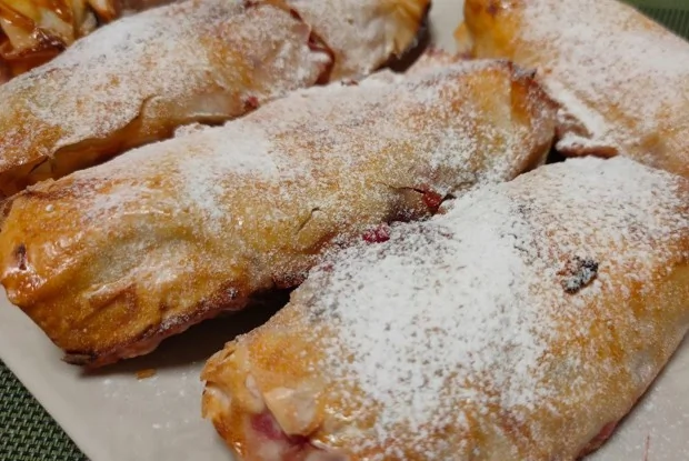 ШАГ 16 Готовые конвертики посыпать сахарной пудрой и подать к столу слегка остуженными.