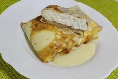 ШАГ 9 Завернуть блины в форме конвертиков.