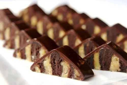 ШАГ 8 Извлеките десерт из формы, держась за края фольги. Подержите нож некоторое время под горячей водой, вытрите насухо и срежьте края. Разрежьте на квадраты и удалите фольгу.