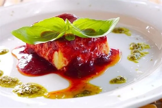 ШАГ 5 Застывшую панна-котту украсить ягодным джемом и листиком мяты. И сразу же подавать.