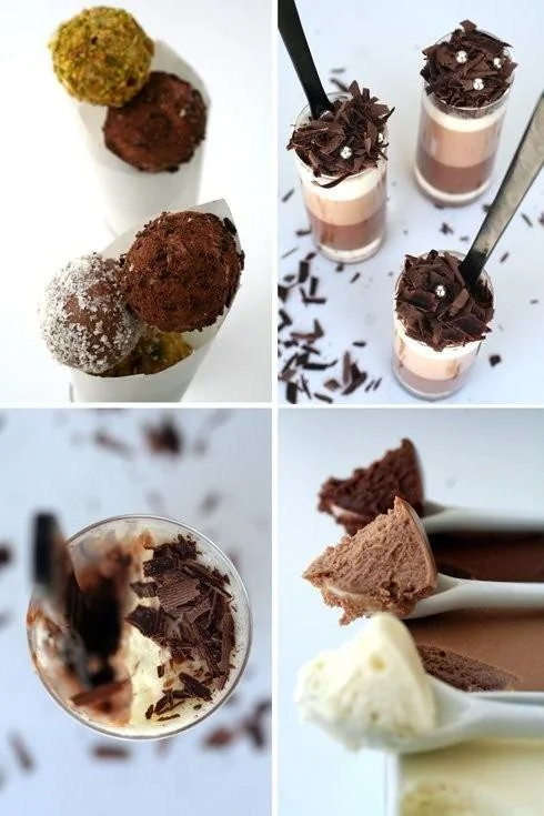 ШАГ 5 Темный шоколад растопить и остудить до нужной температуры. Накалывать трюфели на тонкий стержень или вилку и опускать в черный шоколад. Выкладывать на доску, чтобы стек лишний шоколад.