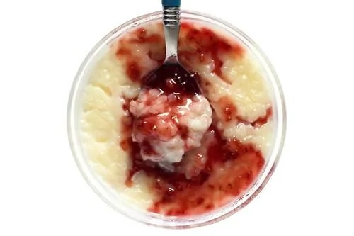 Ризотто с кокосовым молоком, печеными сливами и красной смородиной