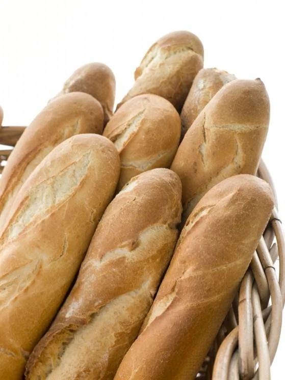 ШАГ 6 Разогрейте духовку до 230 градусов. Аккуратно, чтобы батоны не потеряли форму, положите их на противень, посыпанный мукой, и разместите на большом расстоянии друг от друга. Сделайте сверху каждого батона по нескольку диагональных надрезов. Поместите противень на верхнюю полку духовки и побрызгайте стенки духовки из распылителя. Выпекайте батоны 15–20 минут до золотистой корочки. Выньте готовые батоны из духовки и дайте им остыть.