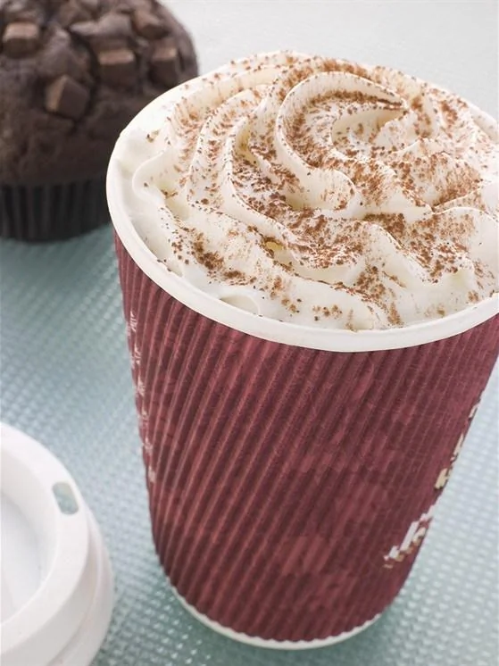 Белый горячий мятный шоколад со взбитыми сливками и карамелью