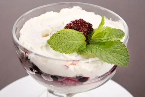 ШАГ 2 Разложите ежевику по 4 креманкам, полейте чайным сиропом и сверху выложите небольшое количество йогурта.
