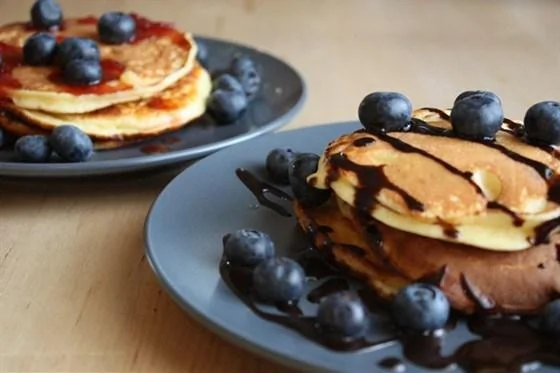 ШАГ 2 На сковороду налейте немного растительного масла, разогрейте. С помощью столовой ложки выкладывайте смесь в сковороду и готовьте 5–7 минут, пока блинчики не поджарятся с обеих сторон. Подавайте с сиропом или свежими ягодами.
