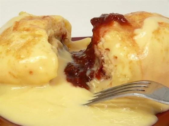 ШАГ 1 Сахар хорошо растереть с яичными желтками и мукой. Эту массу развести горячим молоком и, непрерывно помешивая, варить соус до кипения.