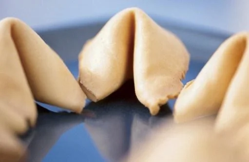 ШАГ 5 Достать из духовки противень и быстро, пока круги не остыли, снимать их по одному, класть в середину записочку с пожеланиями складывать пополам, а затем ещё раз пополам, сгибом внутрь, по принципу пельменей, но так, чтобы уголки не касались друг друга.
