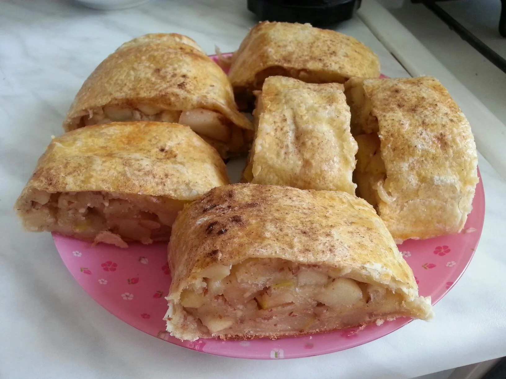 ШАГ 4 Пока тесто настаивается - готовим начинку. Яблоки очистить от кожуры и сердцевины, порезать небольшими плоскими дольками.