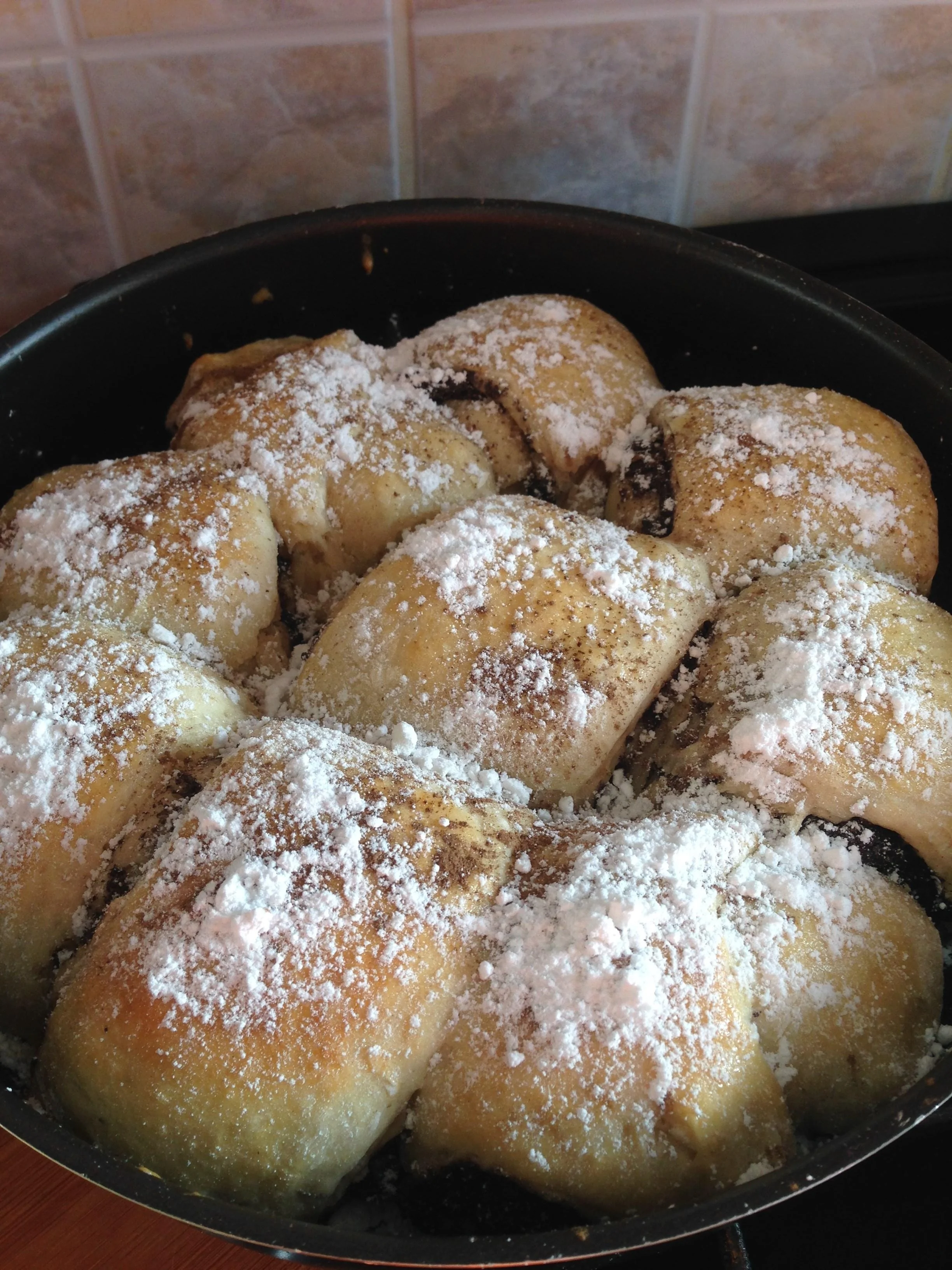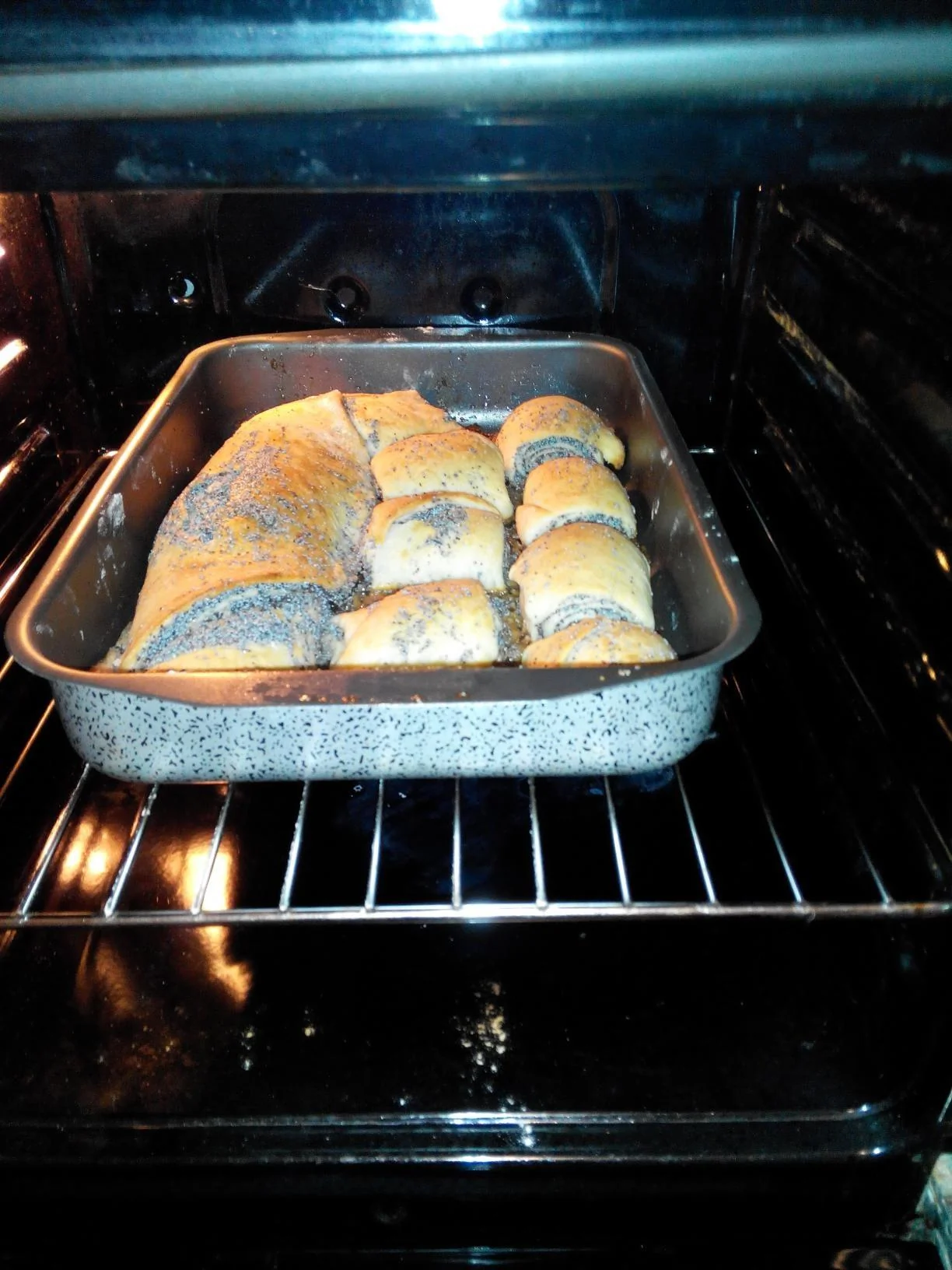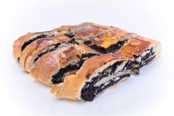 ШАГ 3 Тесто раскатать в тонкий пласт и по всей поверхности равномерно распределить начинку из мака. Свернуть тесто в рулет так, чтобы мак оказался внутри. Нарезать булочки высотой в пять сантиметров.