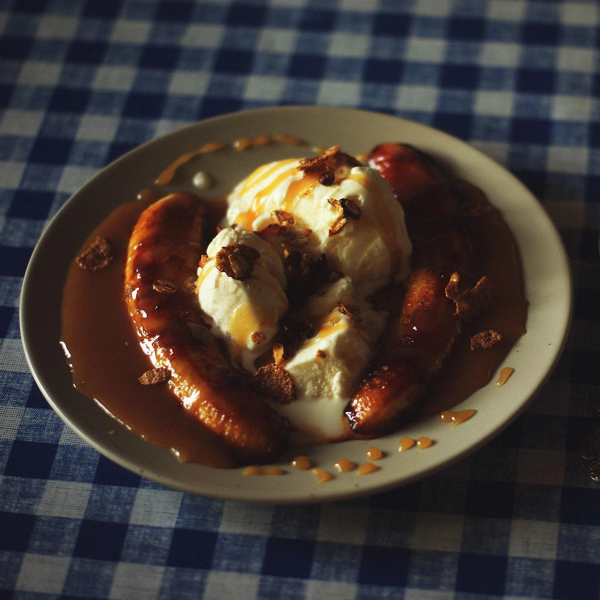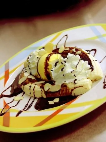 Карамелизованный банановый сплит с горячим шоколадным соусом