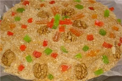 ШАГ 4 Верх торта посыпать крошкой, украсить по своему вкусу.