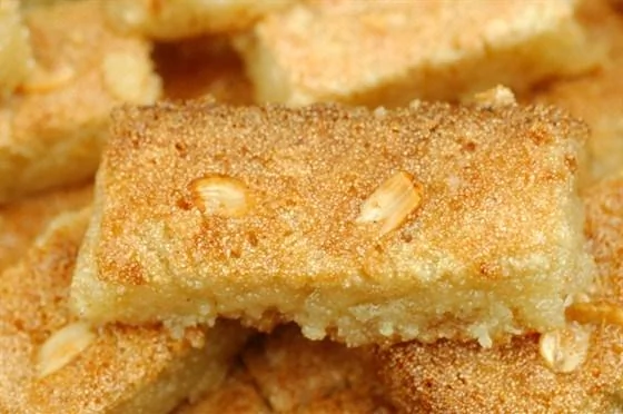 ШАГ 5 Выпекайте до готовности примерно 45 минут. Разрежьте на небольшие квадраты и оставьте в форме. Сбрызните холодным сиропом и оставьте на 30 минут. Подавайте теплым.