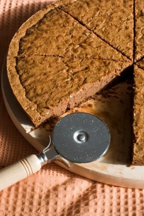 ШАГ 2 Раскатайте тесто в виде круга толщиной 1 см. Выложите на смазанный сливочным маслом лист пергаментной бумаги и в нескольких местах проколите тесто вилкой. Выложите поверх патоку, какао и несколько шариков сливочного масла. Дайте настояться в течение 1 часа.