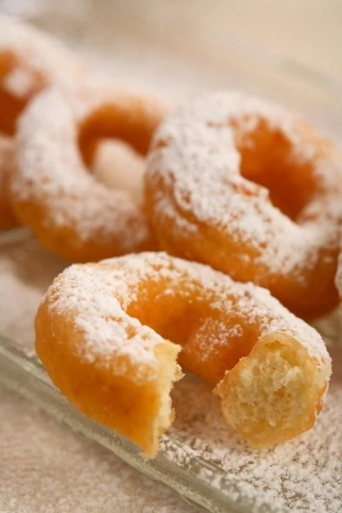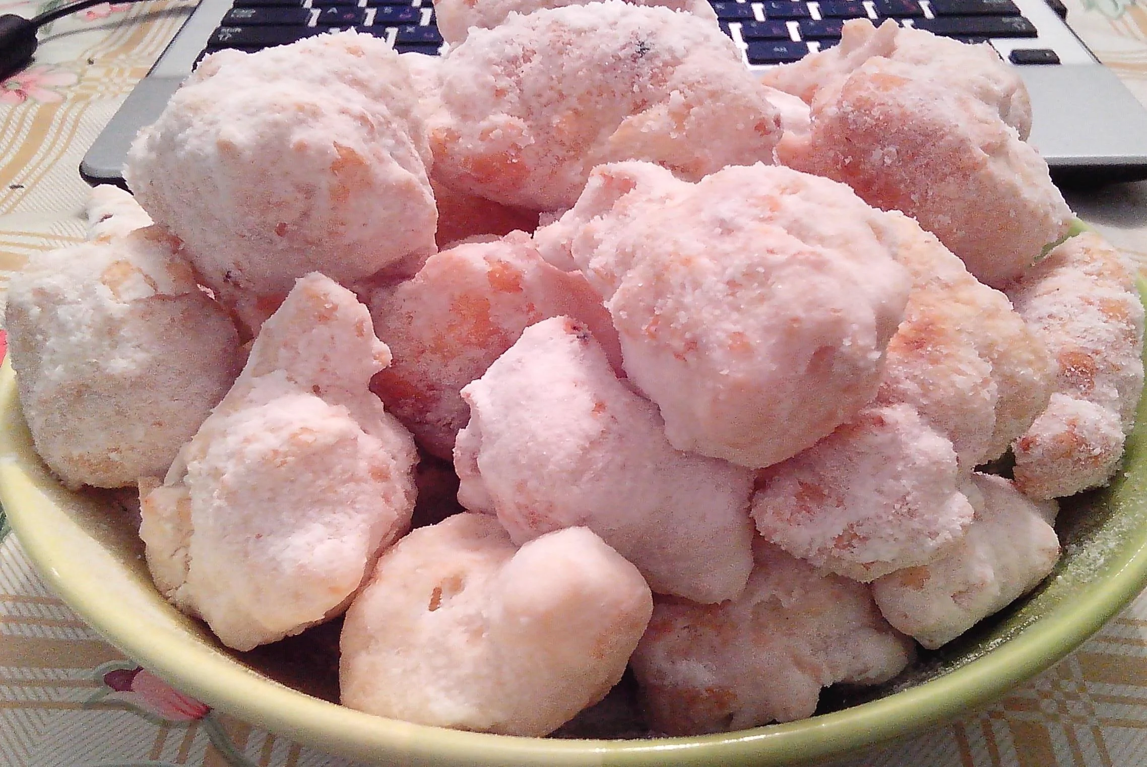 ШАГ 5 Вынимать шумовкой на салфетки или бумажные полотенца, чтобы стекло лишнее масло. Обсыпать сахарной пудрой и подавать, не дожидаясь, когда остынут.