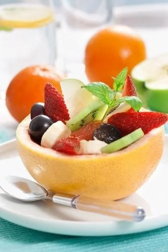 Сладкий салат из бананов, винограда, ананаса и цитрусов