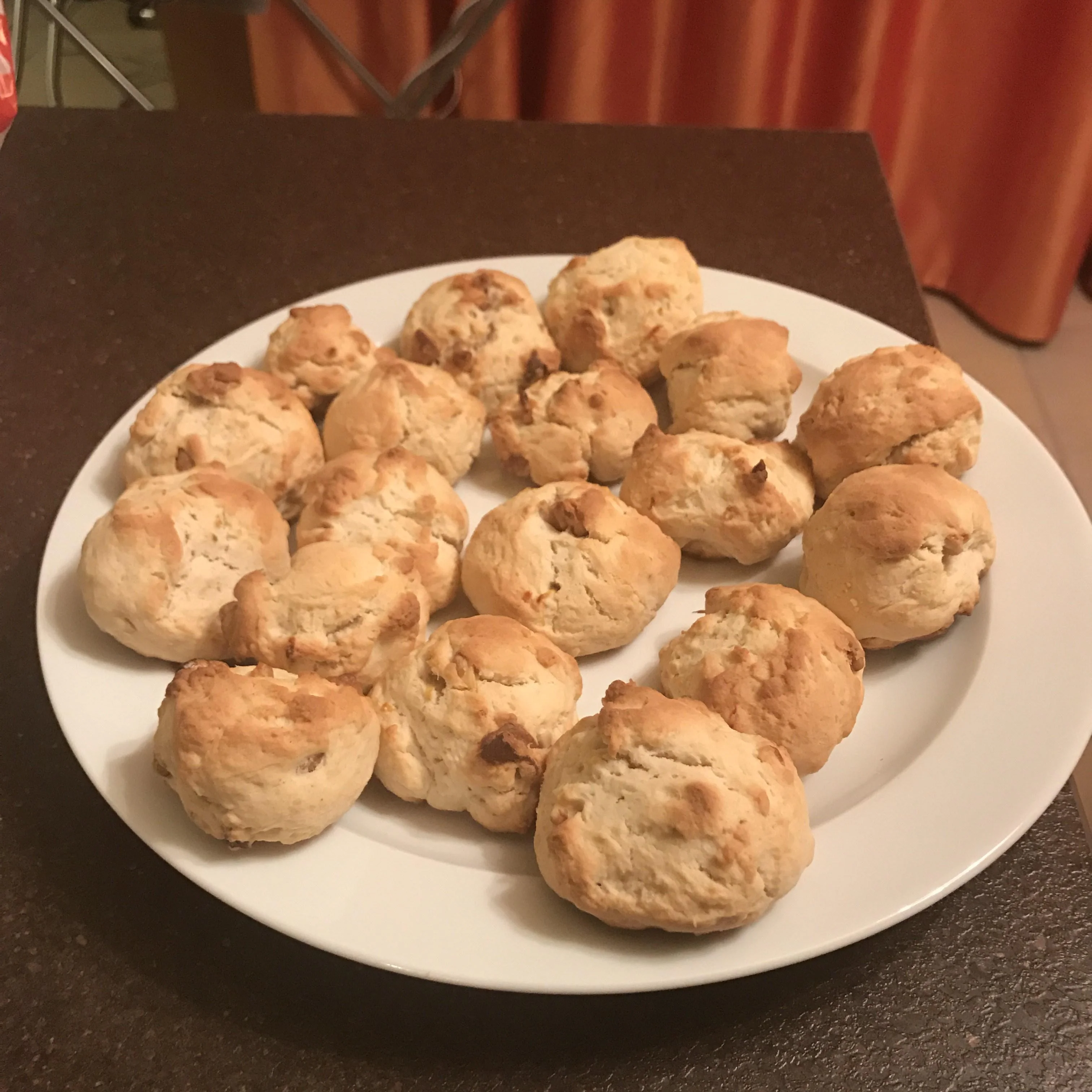 ШАГ 3 Выложите тесто в на присыпанную мукой поверхность и раскатайте на тонкие длинные колбаски. Нарежьте тесто на шарики величиной с грецкий орех и переложите на противень.