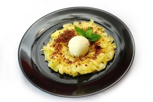 Ананасы в черном перце на гриле с мороженым и медово-апельсиновым соусом