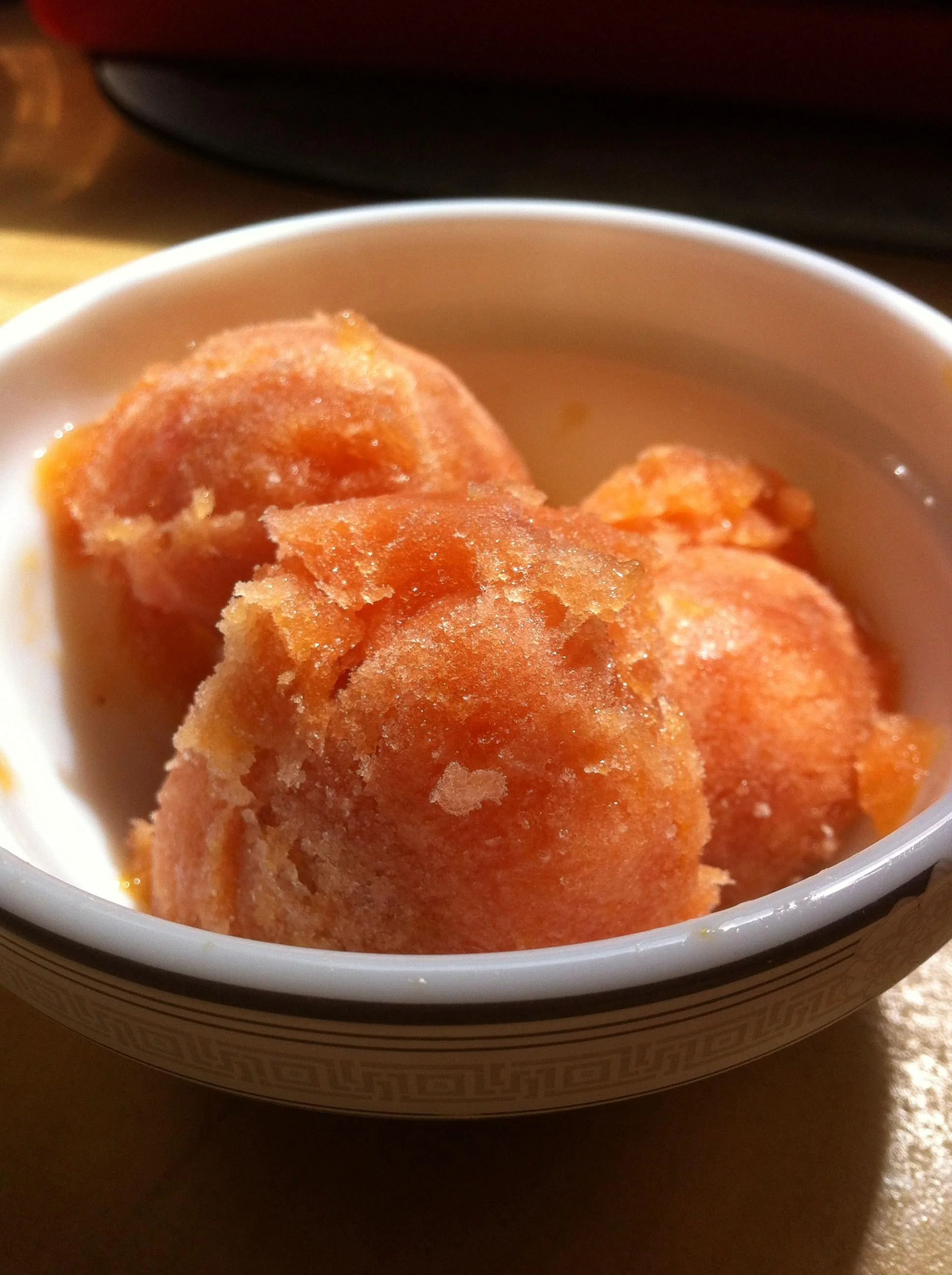 ШАГ 4 Спустя часа 2 необходимо взбить застывшее пюре блендером или хорошенько перемешать ложкой и снова отправь в морозилку. Еще через 1,5-2 часа можно наслаждаться прохладным десертом, вкусным и полезным :)