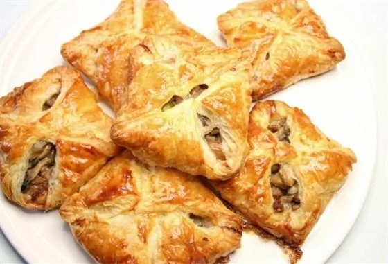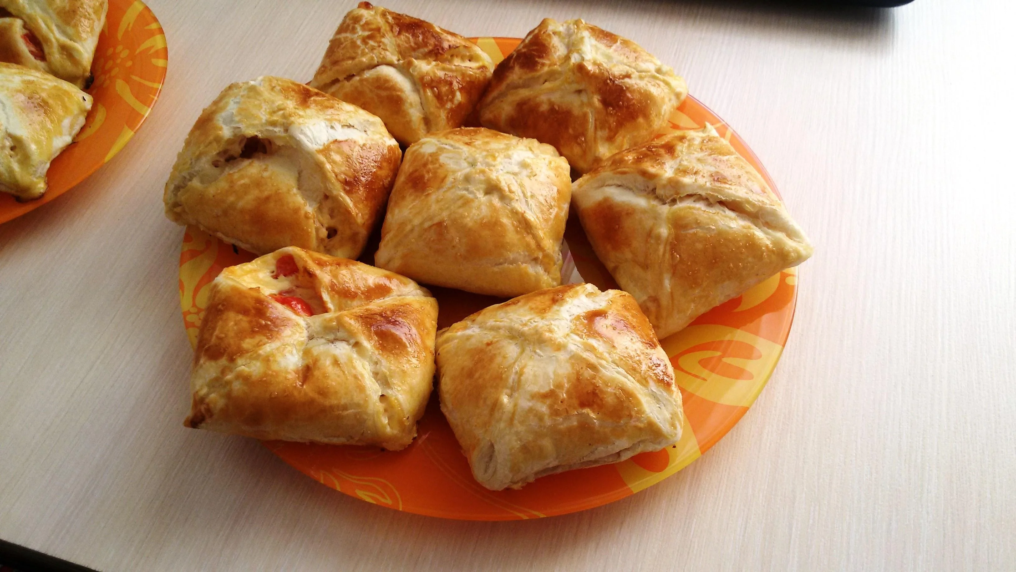ШАГ 2 Из теста слепить небольшие конвертики, наполнить их начинкой.