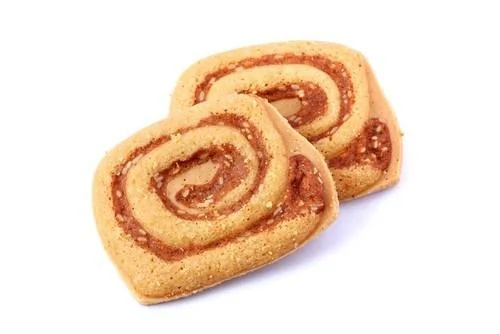 ШАГ 3 На каждый прямоугольник выложить начинку, свернуть тесто в рулет и нарезать его ломтиками.