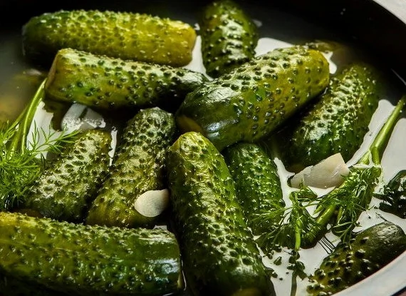 ШАГ 5 Залить заготовку горячим рассолом и накрыть крышкой. На следующий день огурцы будут готовы.